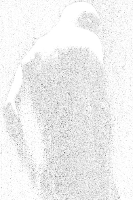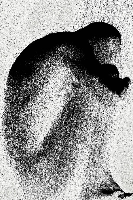 The high-contrast and granular textures evoke a sensation of atomic or quantum "noise", visualizing the idea that all matter is in constant flux at a microscopic level. The presentation of the human form as indistinguishable from its environment without the presence of light energy is a challenge to our perceptions of individuality and separation from nature, from reality.